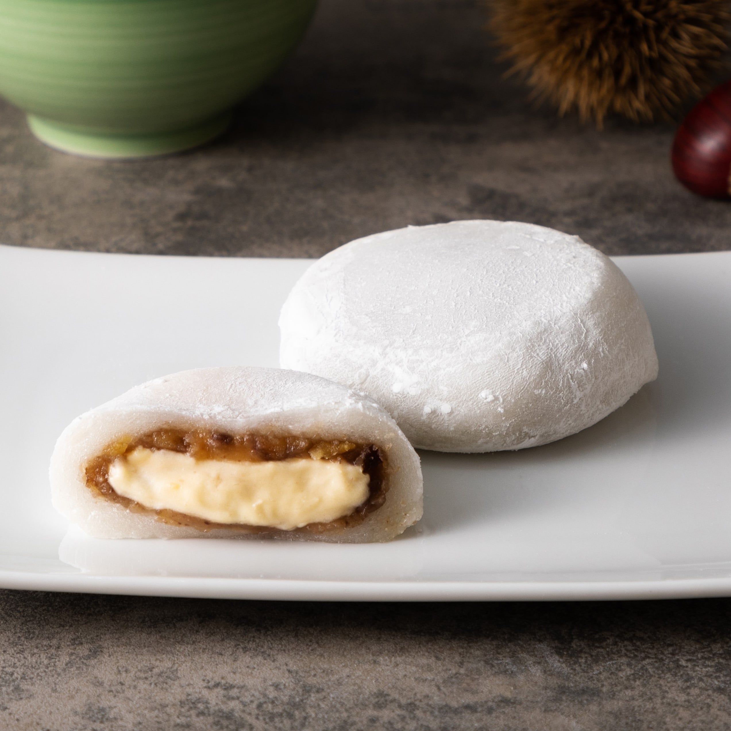 この度、栗の優しく上品な味わいを堪能いただける「とろけるくりーむ大福 栗あんカスタード」がオンラインショップに新登場!
